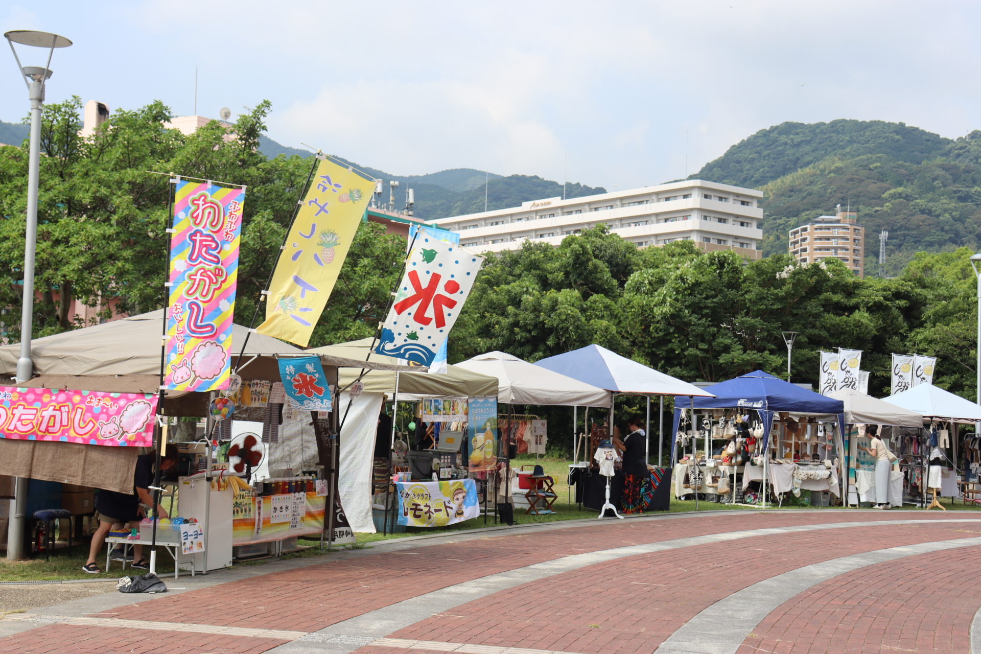 長崎ペンギン水族館の正面入口前広場にハンドメイド雑貨!美味しいもの!など各日たくさんの店舗が大集合♪